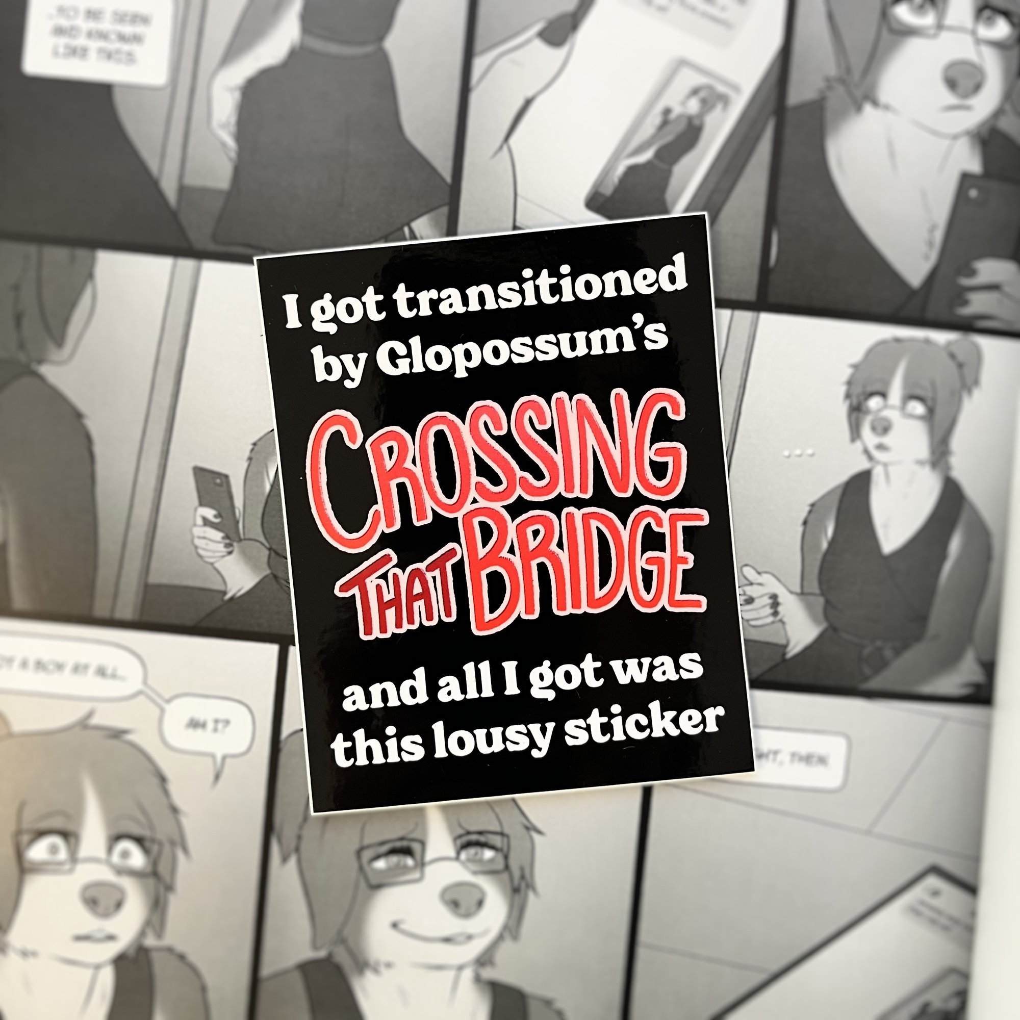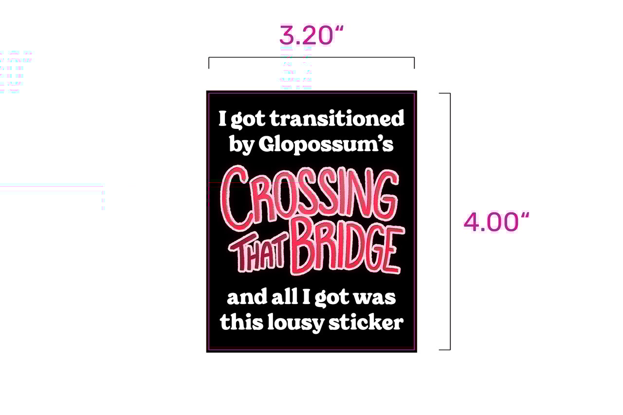 Glossy waterproof vinyl sticker, measuring 3.2" x 4", made in partnership with local sticker purveyor StickerNinja. Fits snug on the backside of a convention badge, a sketchbook, laptop, or anywhere else that feels right in your heart.